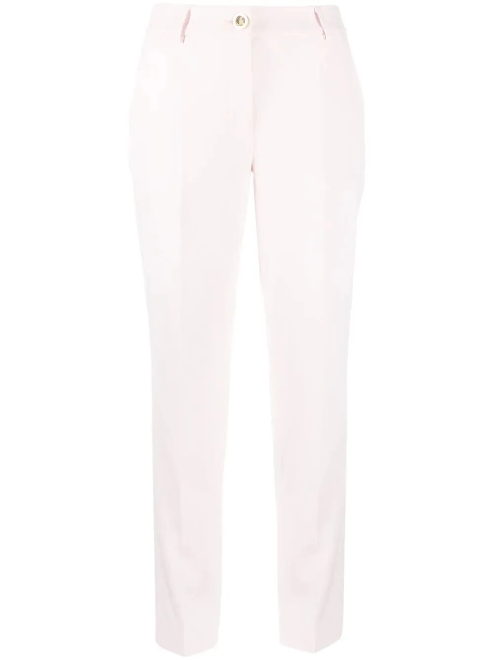 tapered office trousers rose pink stretch-design pressed crease high-waisted belt loops front button and zip fastening tapered leg Made in Italy Composition Outer: Polyester 89%, Spandex/Elastane 11% Lining: Polyester 100% SIZE & FIT Model measurements Height 5 ft 10 in(1.77 m) Bust/Chest 34.64 in(88 cm) Hips 35.43 in(90 cm) Waist 24.8 in(63 cm) FittingInformation This piece fits large – you might want to get one size down Cut for a slim fit Made with a mid-weight stretch fabric Washing instructions Dry Clean Only