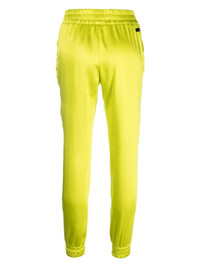 tapered satin track pants fluorescent yellow satin finish logo patch to the rear tapered leg high-waisted concealed fly and button fastening elasticated waistband elasticated ankles slip pockets to the sides Made in Italy Composition Polyester 98%, Spandex/Elastane 2% Washing instructions Dry Clean Only