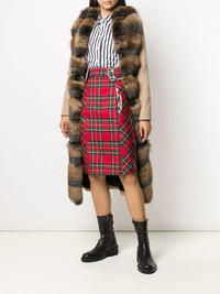 Tartan pencil skirt Red wool blend Tartan pencil skirt from Philipp Plein featuring a high rise, a belted waist, a silver-tone buckle, a fabric mix, a knee length and a back slit at hem. Made in Italy Composition Outer: Polyurethane 100%, Virgin Wool 48%, Acrylic 21%, Polyester 18%, Wool 10%, other fibers 3% Lining: Acetate 60%, Viscose 40% SIZE & FIT Model measurements Height 5 ft 11 in(1.8 m) Bust/Chest 33.07 in(84 cm) Hips 37.4 in(95 cm) Waist 25.19 in(64 cm) FittingInformation This piece fits true to size. We recommend you get your regular size Cut for a slim fit Made with a mid-weight non-stretch fabric Washing instructions Dry Clean Only