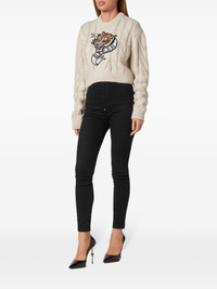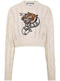 Tattoo cropped wool jumper Highlights - Cream white - Wool - Cable knit - Applique logo - Signature tiger motif - Crew neck - Drop shoulder - Long sleeves - Ribbed cuffs and hem - Cropped - Pull-on style Made in Italy Composition Wool 100%
