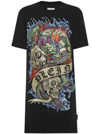Tattoo crystal T-shirt dress Highlights - Black/multicolour - Cotton - Jersey texture - Graphic print to the front - Logo print to the front - Crystal embellishment - Applique logo - Crew neck - Short sleeves - Straight hem - Thigh-length Imported Composition Cotton 100%