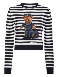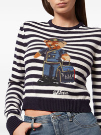 teddy bear-jacquard jumper Highlights - Navy blue - Horizontal stripe pattern - Embroidered logo - Long sleeves - Cropped Made in Italy Composition Fabric 100% Washing instructions Read Manufacturer Guidelines