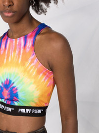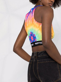 tie dye-print cropped top black/multicolour tie-dye print logo-tape detailing round neck racerback sleeveless cropped Imported Composition Polyester 95%, Spandex/Elastane 5% SIZE & FIT Model measurements Height 5 ft 10 in(1.77 m) Bust/Chest 29.92 in(76 cm) Hips 34.25 in(87 cm) Waist 23.62 in(60 cm) FittingInformation This piece fits true to size. We recommend you get your regular size Cut for a slim fit Made with a mid-weight stretch fabric Washing instructions Hand Wash