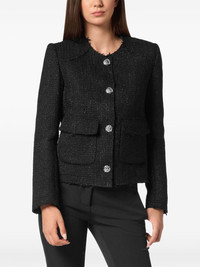 tweed jacket Highlights - Black - Tweed - Raw-cut finish - Embossed silver-tone buttons - Crew neck - Front button fastening - Shoulder pads - Long sleeves - Two side flap pockets - Straight hem - Full lining Made in Italy Composition Outer: Polyester 83%, Acrylic 15%, Other fibres 2% Lining: Polyester 100%