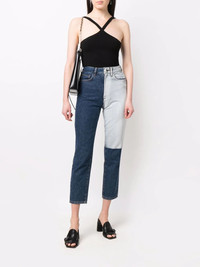 two tone patch jeans