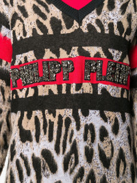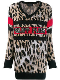 V-neck leopard top This AW19 Philipp Plein presents the houses "20th Anniversary" collection which portrays the houses glamorous rock'n'roll aesthetic with their iconic embellished skull motifs and statement slogans. Revive your ready to wear wardrobe with the black wool V-neck leopard top from Philipp Plein featuring a v-neck, long sleeves, a relaxed fit and a leopard print. Made in Italy Composition Wool 85%, Mohair 15% SIZE & FIT Model measurements Height 5 ft 9 in(1.76 m) Bust/Chest 31.88 in(81 cm) Hips 37 in(94 cm) Waist 25.19 in(64 cm) FittingInformation This piece fits true to size. We recommend you get your regular size Cut for a relaxed fit Made with a mid-weight fabric Washing instructions Hand Wash