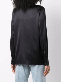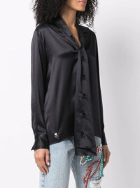 V-neck pussybow silk blouse black silk V-neck pussy-bow fastening long sleeves straight hem Made In Italy Composition Silk 100% SIZE & FIT Model measurements Height 5 ft 10 in(1.78 m) Bust/Chest 33.07 in(84 cm) Hips 36.61 in(93 cm) Waist 24.8 in(63 cm) FittingInformation This piece fits true to size. We recommend you get your regular size Cut for a loose fit Made with a mid-weight non-stretch fabric Washing instructions Hand Wash