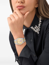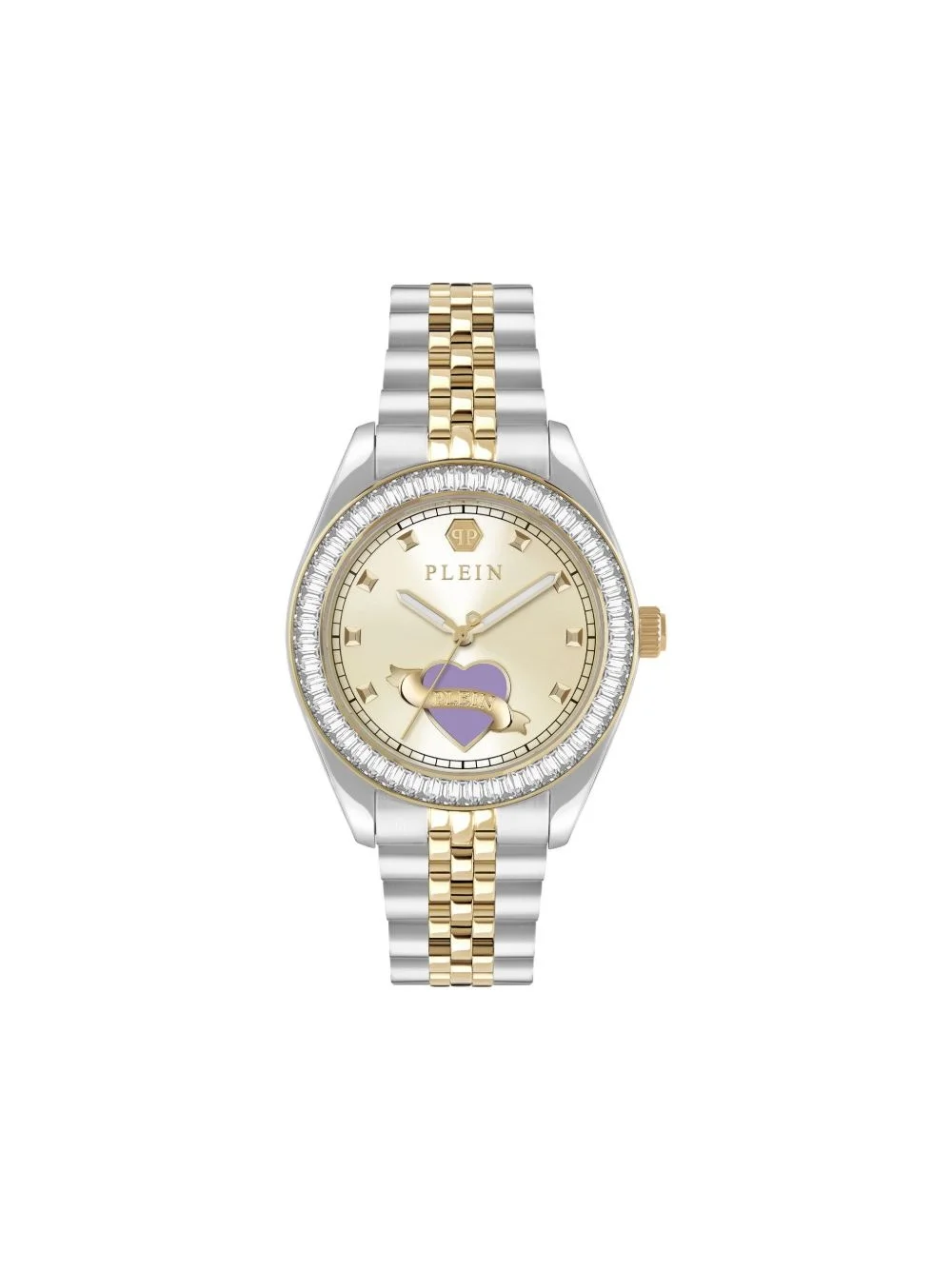 Valentine 38mm Highlights - Stainless steel case - Quartz movement - Light yellow - Geometric dial - Arrow hands - Engraved logo - Crystal-encrusted bezel - Round face - Screw-down crown - Stainless steel link bracelet - Push-button folding clasp - Water resistance up to 50m/5 atm - This item comes with a standard two-year warranty from the brand. Imported