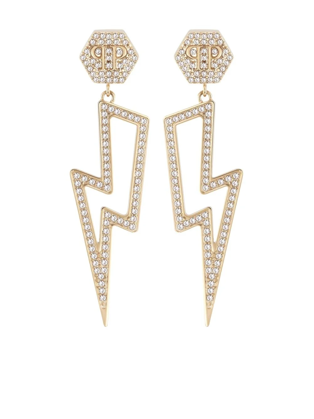 Vanity earrings Highlights - Gold-tone - Post-back fastening - Crystal embellishment - Engraved logo - These earrings come as a pair. Imported SIZE & FIT Measurement HEIGHT 2.3 in(5.8 cm) Weight (single earring) 11 g(11 g) WIDTH 0.59 in(1.5 cm)