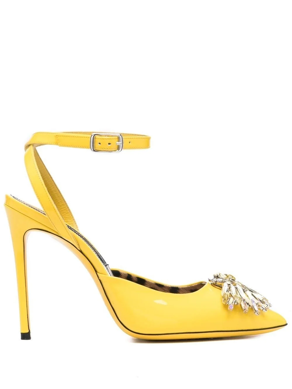 vernice 110mm crystal-embellished pumps yellow calf leather patent finish crystal embellishment pointed toe buckle-fastening ankle strap 110mm high heel Made in Italy Composition Lining: Calf Leather 100% Sole: Calf Leather 100% Outer: Patent Calf Leather 100% SIZE & FIT Measurement HEEL 4.33 in(11 cm)