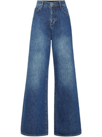 wide-leg jeans Highlights - Indigo blue - Concealed fly and button fastening - Belt loops - Classic five pockets - Logo plaque Imported Composition Outer: Cotton 100%, Polyester 100%, Metal 100% Lining: Polyester 65%, Cotton 35%
