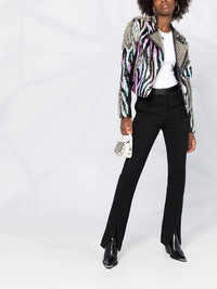 zebra leather biker jacket Black/multicolour leather zebra leather biker jacket from Philipp Plein featuring sequin embroidery, silver-tone stud detailing, a front zip fastening, long sleeves and a front zip pocket. Imported Composition Outer: Lamb Skin 100%, Polyester 100% Lining: Acetate 100% SIZE & FIT Model measurements Height 5 ft 10 in(1.78 m) Bust/Chest 31.49 in(80 cm) Hips 37 in(94 cm) Waist 23.62 in(60 cm) FittingInformation This piece fits true to size. We recommend you get your regular size Cut for a slim fit Made with a heavyweight non-stretch fabric Washing instructions Specialist Cleaning