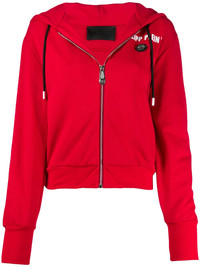 zip-up logo print hoodie Highlights - Cherry-red - Cotton-blend - Classic hood - Drawstring fastening - Front zip fastening - Logo print to the front - Logo plaque - Long sleeves - Fitted-cuff sleeves Made in Italy Composition Cotton 100%, Brass 100%, glass 100% SIZE & FIT Model measurements Height 5 ft 10 in(1.79 m) Bust/Chest 32.67 in(83 cm) Hips 35.43 in(90 cm) Waist 25.98 in(66 cm) FittingInformation This piece fits true to size. We recommend you get your regular size Cut for a loose fit Made with a mid-weight fabric Washing instructions Hand Wash