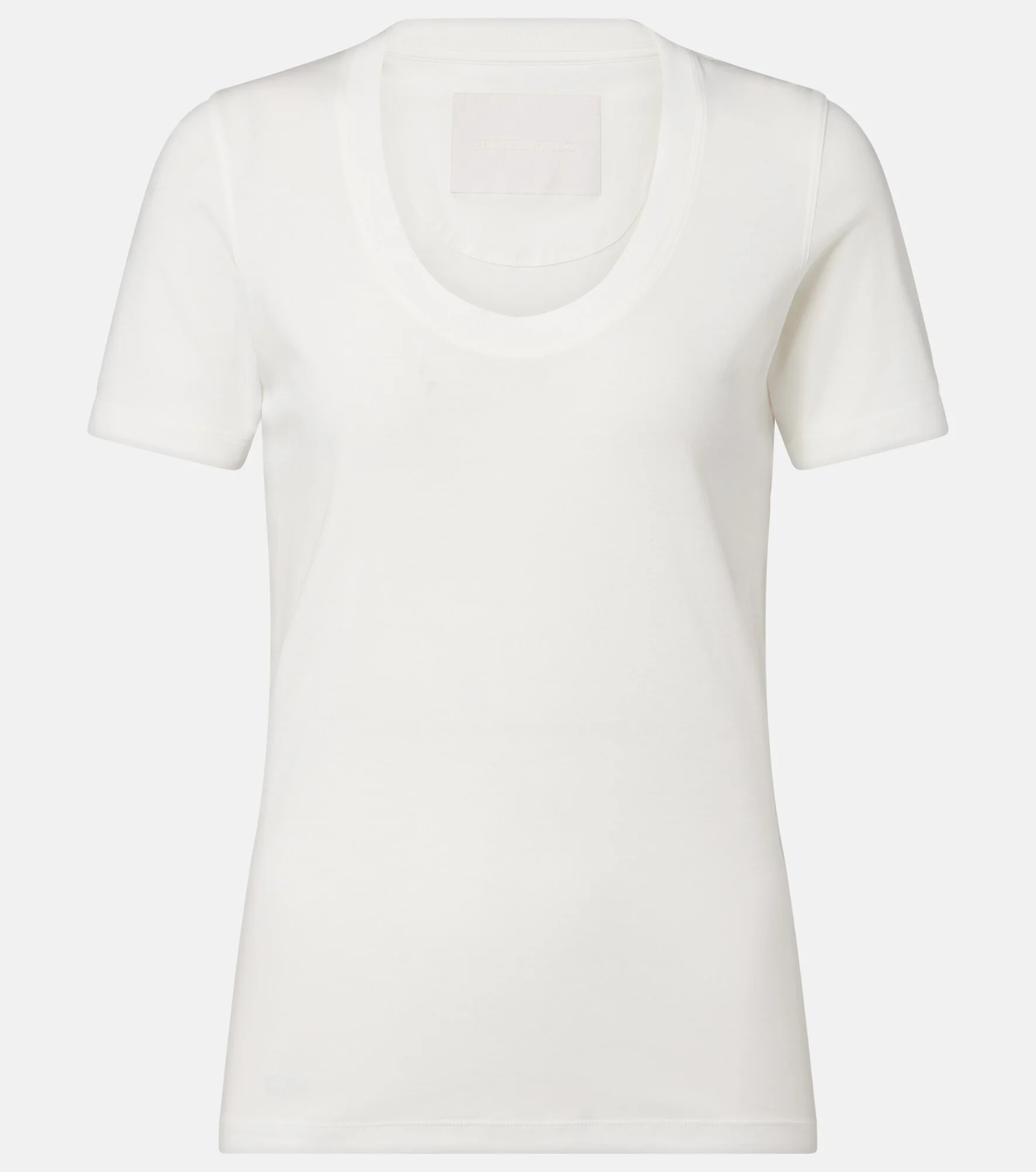 This short-sleeved T-shirt from Phoebe Philo is crafted from white cotton jersey. The style is designed with a slim fit and a scoop neckline. Product Details - Material: 100% cotton - Care instructions: machine wash at 30 degrees - Made in Portugal - Color: white - Designer color name: White - Trim: 100% cotton - Item number: P01134810 Size & Fit - True to size - Fitted - Stretchy fabric - Falls to the hip - The model seen in the picture is 178cm-5'10" and wearing a size XS