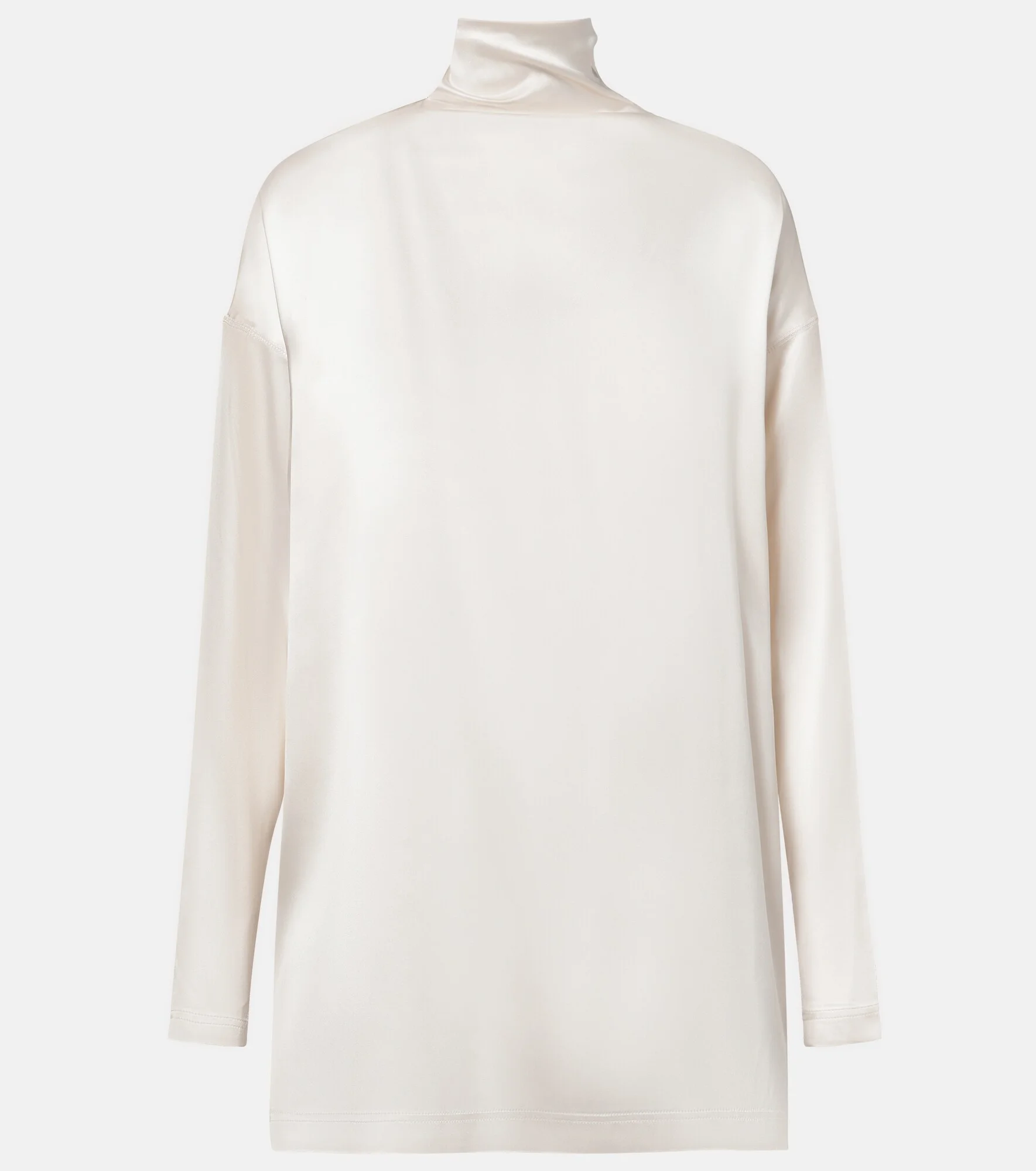 Grounded in minimalism and precision, Phoebe Philo's designs speak to modern sensibilities. Crafted from silk-blend satin, the Liquid Knot blouse presents a fluid silhouette with a high neckline fastened in a tie at the back. Product Details - Material: 92% silk, 8% elastane - Care instructions: dry clean - Made in the UK - Color: white - Designer color name: Cream - Closure: zipped shoulder - Item number: P01134960 Size & Fit - True to size - Dropped shoulders - Designed for a loose fit - Non-stretchy fabric - Falls below the hip - Height of model is 174cm-68.5" and wears a size FR 36