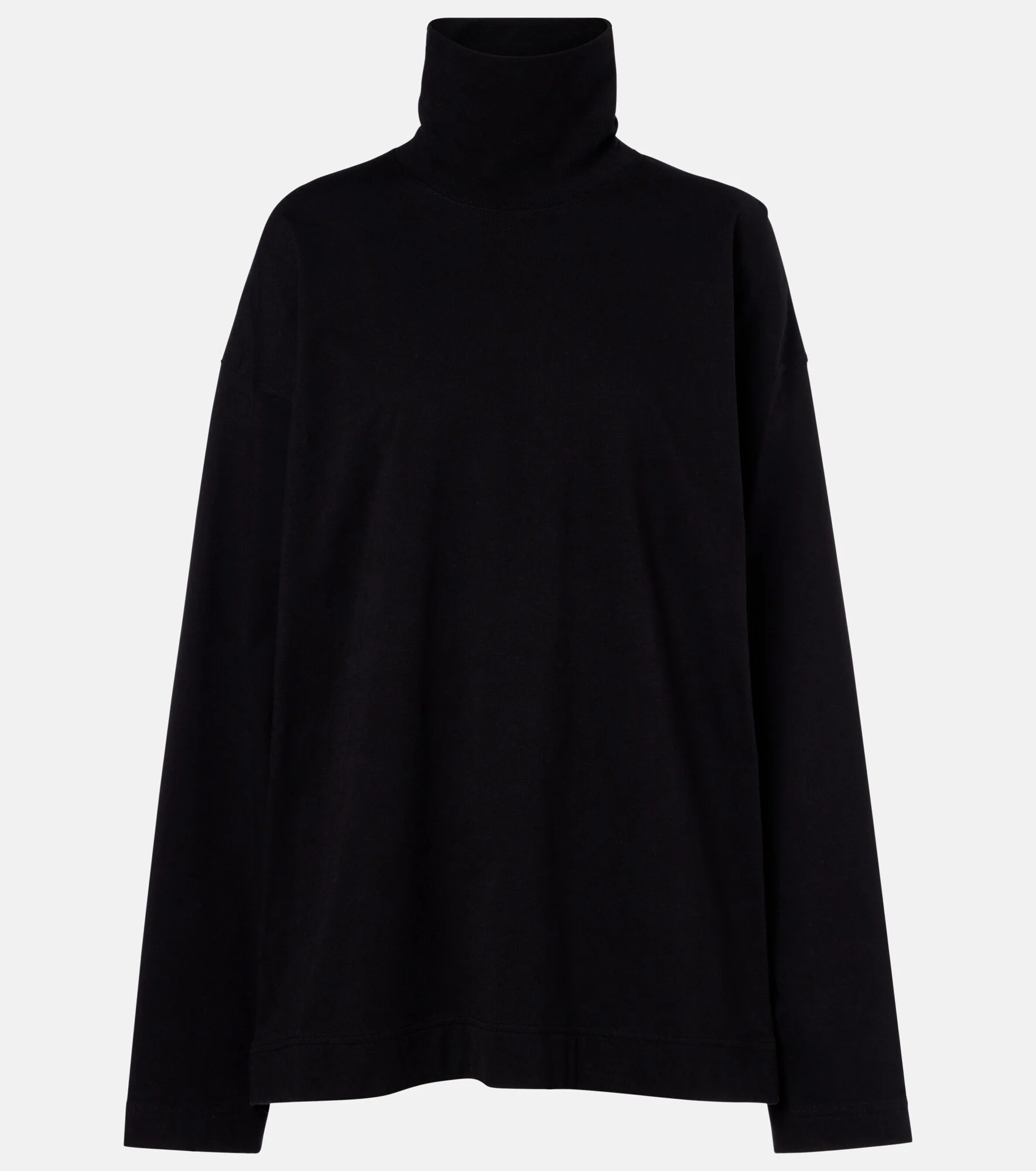 This Phoebe Philo top is the perfect mix of elegance and comfort: crafted from soft jersey, it features a slightly oversized fit with dropped shoulders and a slouchy turtleneck. Product Details - Material: 100% cotton - Care instructions: do not wash - Made in Italy - Color: black - Designer color name: Ivory Glow - Item color: black - Material II: 95% cotton, 5% elastane - Item number: P01071416 Size & Fit - True to size - Dropped shoulders - Designed for a loose fit - Non-stretchy fabric - Falls below the hip - Height of model is 179cm-70.5" and wears a size XS