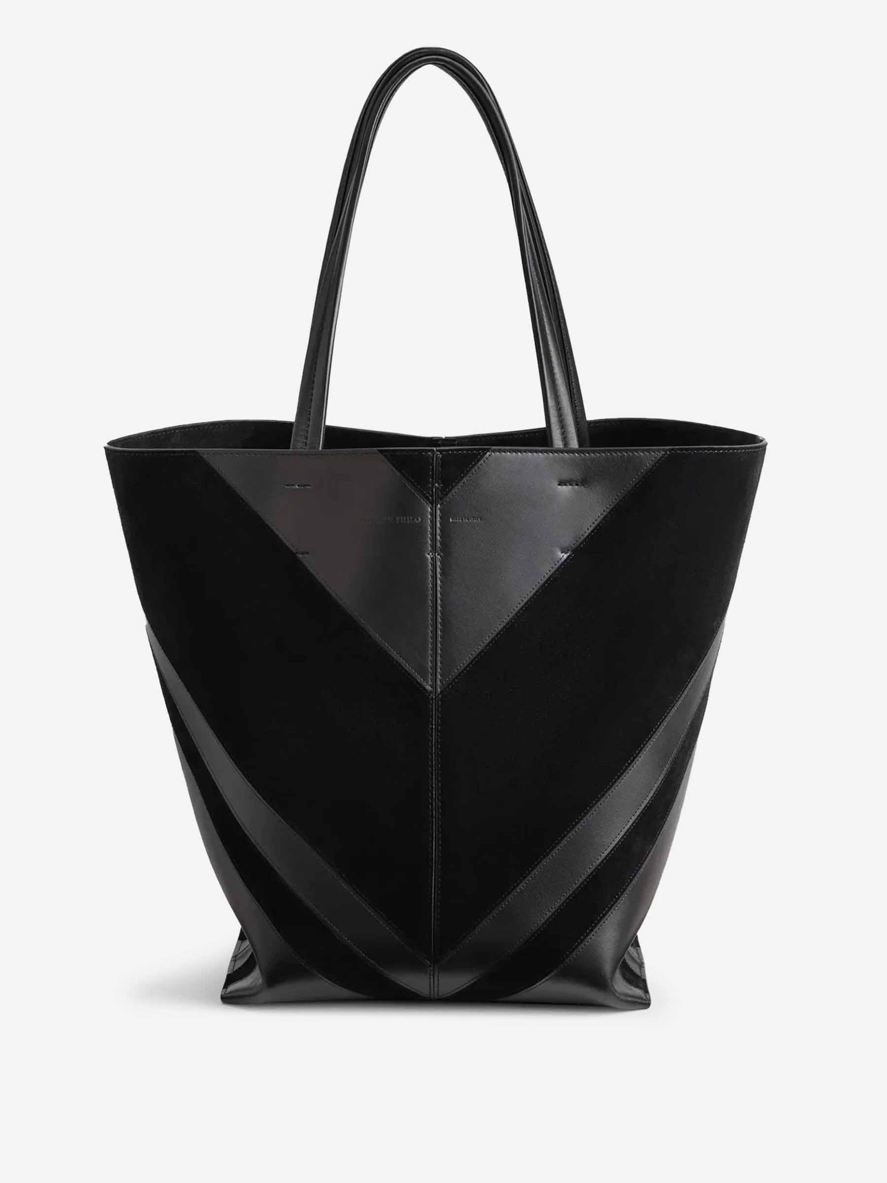 SKU: 810-008415 01 BRAND ID: AB31-LT0057 Pot Cabas Bag Bag By Phoebe Philo • One interior compartment • Suede interior • 36 x 23 x 27 cm • Removable interior pocket with zipper • Medium Size • Clip closure • Leather handles • Crafted in smooth leather and suede with intarsia 100% calfskin Made in Italy