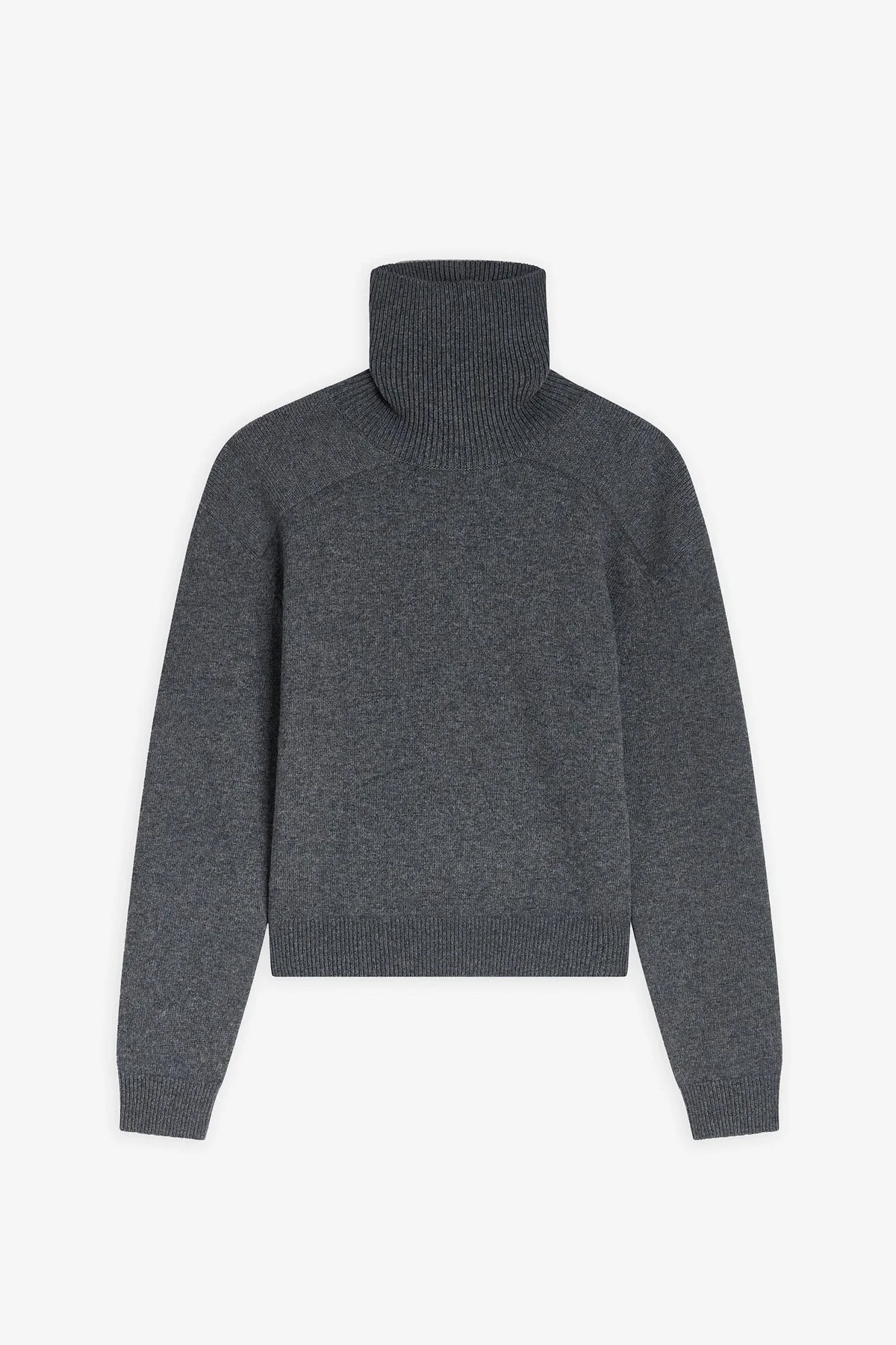 Grey wool and cashmere jumper from Phoebe Philo. The Patch shoulder jumper is made in a grey melange wool cashmere blend with a high slouched neck. It has reinforced patches at the shoulders that gently amplify the silhouette, complete with ribbed neck, cuffs, and hem. - Material: 67% Wool, 28% Cashmere, 5% Polyester - Made in Italy Product Code: CK127-YW4520-920GM