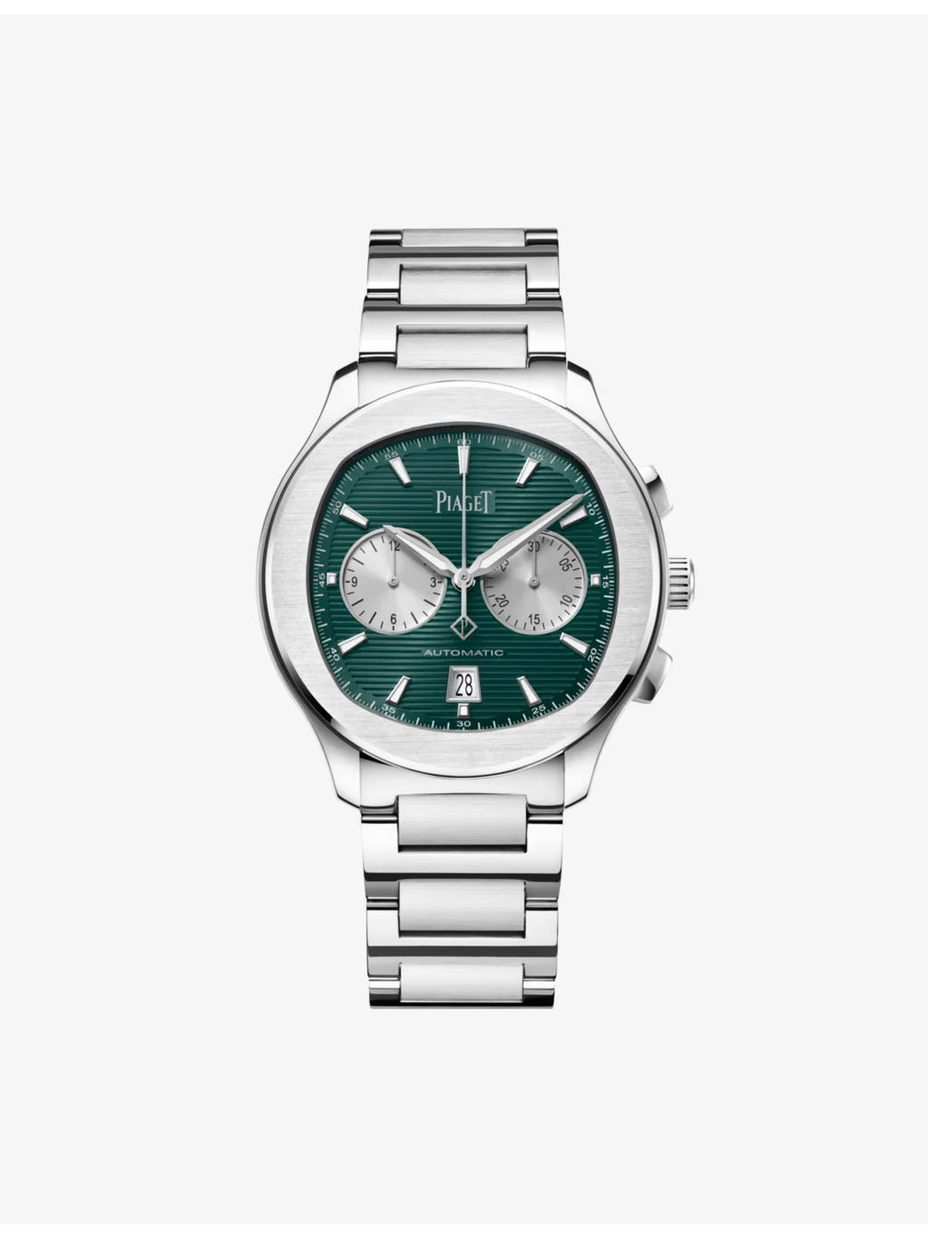 PRODUCT DETAILS - Piaget stainless-steel watch - Case material: 100% stainless steel - Strap material: 100% stainless steel - Crown: 100% stainless steel - Bezel: 100% stainless steel - Style Number: PGG0A49024 - Movement type: self-winding - Fastening: triple folding clasp - Dial: green dial - Indexes: batons - Calibre: mechanical movement - Case diameter: 42mm - Case thickness: 11.2mm - Water resistance: 100 meters - Made in Switzerland - Care: please refer to the brand's instructions Ref: R04540441