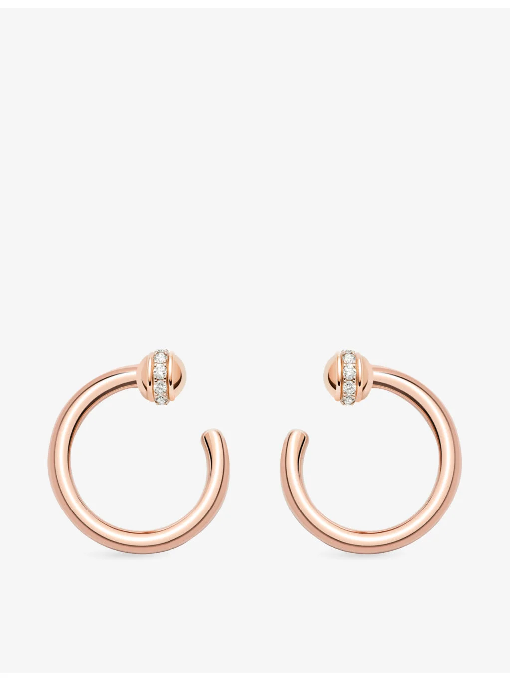 PRODUCT DETAILS - Piaget 18ct rose-gold and 0.2ct diamond hoop earrings - 100% 18ct rose gold - Diamonds - Screw-back fastening - Possession collection, sphere ends with set diamonds, polished finish - Carat weight: 0.2ct - Carat clarity: D-G - Carat cut: brilliant - Carat colour: IF-VVS2 - Made in Switzerland - Two-year manufacturer's warranty - Please refer to the brand's instructions - We regret that for hygiene reasons, earrings cannot be exchanged or refunded, unless faulty. Ref: R04540421