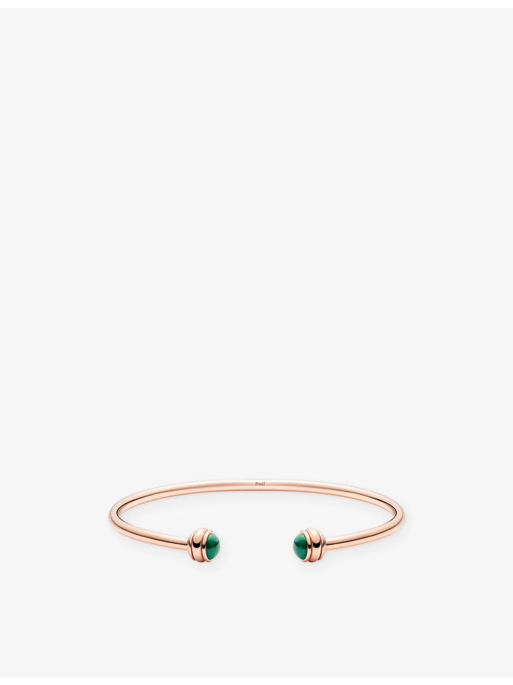 PRODUCT DETAILS - Piaget 18ct rose-gold and malachite bangle - 100% 18ct rose gold - 2 malachite stones - Slips on - Open band, two ends with Malachite, polished finish - Please use a soft, dry polishing cloth - Made in Switzerland Ref: R04540418
