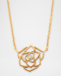 • PIAGET rose necklace. • 18-karat red gold. • Bezel-set diamond center. • 0.02 total diamond carat weight. • Lobster clasp. Piaget Style # G33U0800 Online Inquiries: NMS21_PAG1X Store Inquiries: #2226638 Piaget epitomizes daring creativity – a quality that has continued to permeate through the Maison since its beginnings in 1874. From his first workshop in La Côte- aux- Fées, Georges-Edouard Piaget devoted himself to crafting high-precision movements in a feat that formed the very foundations of our pioneering name. In the late 1950s, Piaget unveiled the ultra-thin movements that would later become the Maison’s trademark and the cornerstone of the Altiplano collection. As a true innovator of the watch and jewellery world, Piaget strongly believed in creativity and artistic values. It is within the walls of our “Ateliers de l’Extraordinaire” where master artisans continue to harness rare skills that have been preserved and perfected from generation to generation, transforming gold, stones and precious gems into dazzling works of art. Through its pursuit of masterful craftsmanship, the Maison has created emblems of daring excellence channeled into its collections including Altiplano, Piaget Polo, Limelight Gala, Possession, Piaget Sunlight, Piaget Rose and Extremely Piaget.