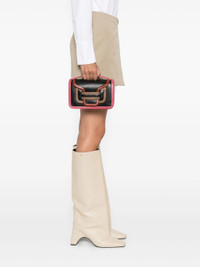 black geometric design single top handle detachable shoulder strap foldover top - Color: BLACK/PINK - Made in: Morocco - Designer Style ID: QV08 ALPHA BKMUL Composition and care Outer Composition Calf Leather: 100.0%, Outer Composition Lambskin: 100.0%