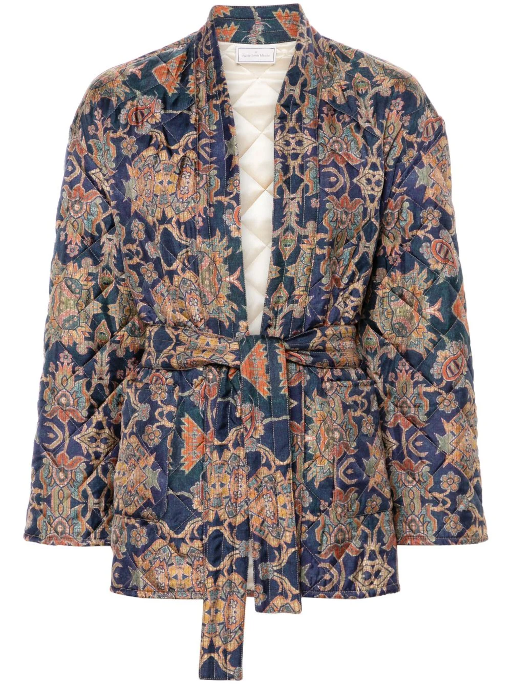 ALOE jacket Highlights - Navy blue/multicolour - Silk blend - Front tie fastening - Abstract pattern print - Diamond quilting - Collarless - Two front patch pockets - Long sleeves - Straight hem Made in Italy Composition Silk 56%, Polyester 44% SIZE & FIT Model measurements Height 5 ft 9 in(1.76 m) Bust/Chest 31.88 in(81 cm) Hips 35.43 in(90 cm) Waist 24.8 in(63 cm) FittingInformation Designed to be unstructured, offering a loose fit throughout The tie fastening gives an adaptable and personalised fit Made from a quilted non-stretch fabric, giving it no natural elasticity Washing instructions Dry Clean Only