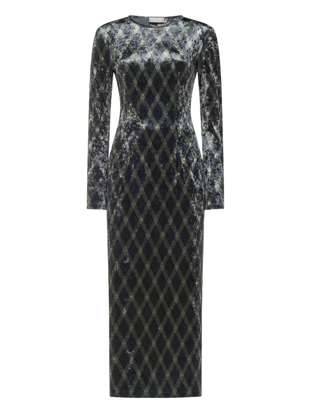 diamond-pattern maxi dress Highlights - Blue - Diamond pattern - Long sleeves - Round neck Imported Composition Polyester 92%, Elastane 8% Washing instructions Read Manufacturer Guidelines