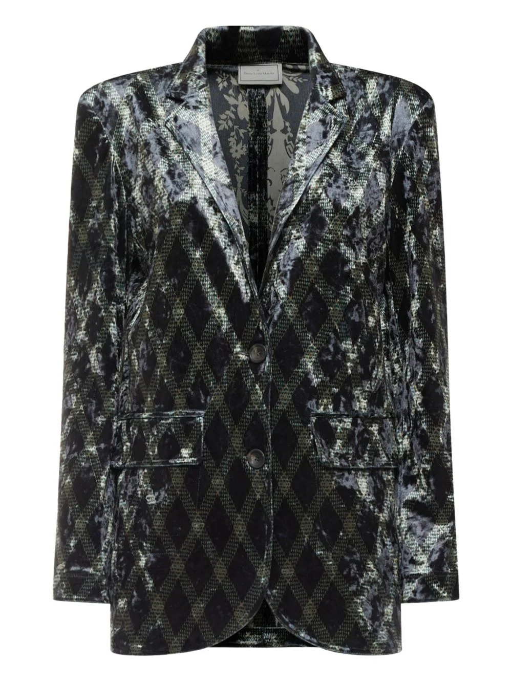 diamond-pattern velvet blazer Highlights - Dark-green - Diamond pattern - Velvet texture - Notched lapel - Two-button fastening - Welt pockets Imported Composition Polyester 92%, Elastane 8% Washing instructions Read Manufacturer Guidelines
