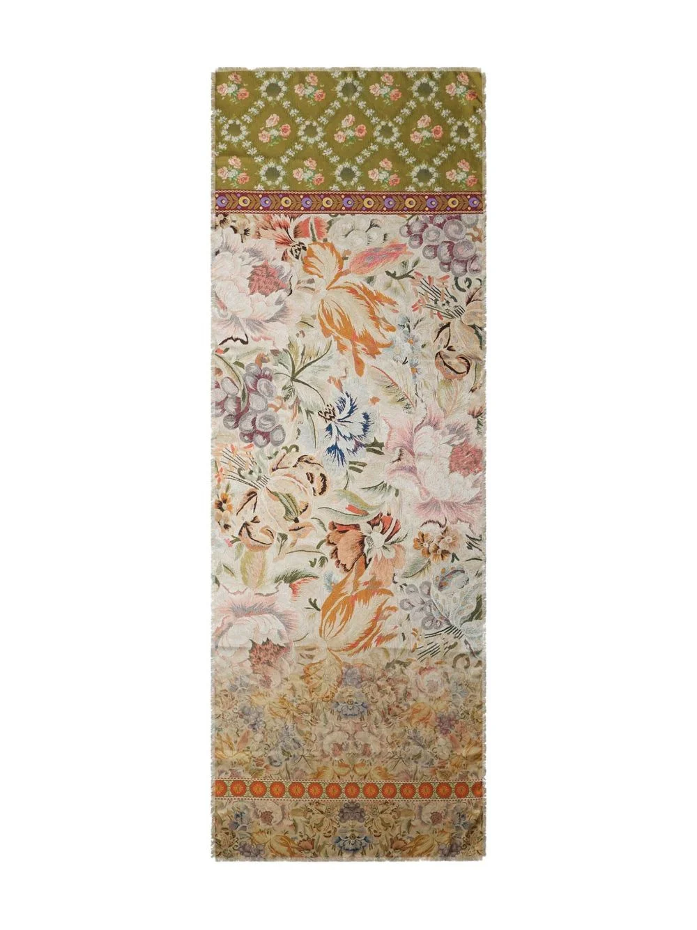 floral-pattern silk scarf Highlights - Green - Silk - Floral pattern - Orange detailing - Rectangular shape Imported Composition Silk 100% SIZE & FIT Measurement LENGTH 74.8 in(190 cm) WIDTH 25.59 in(65 cm) Washing instructions Read Manufacturer Guidelines
