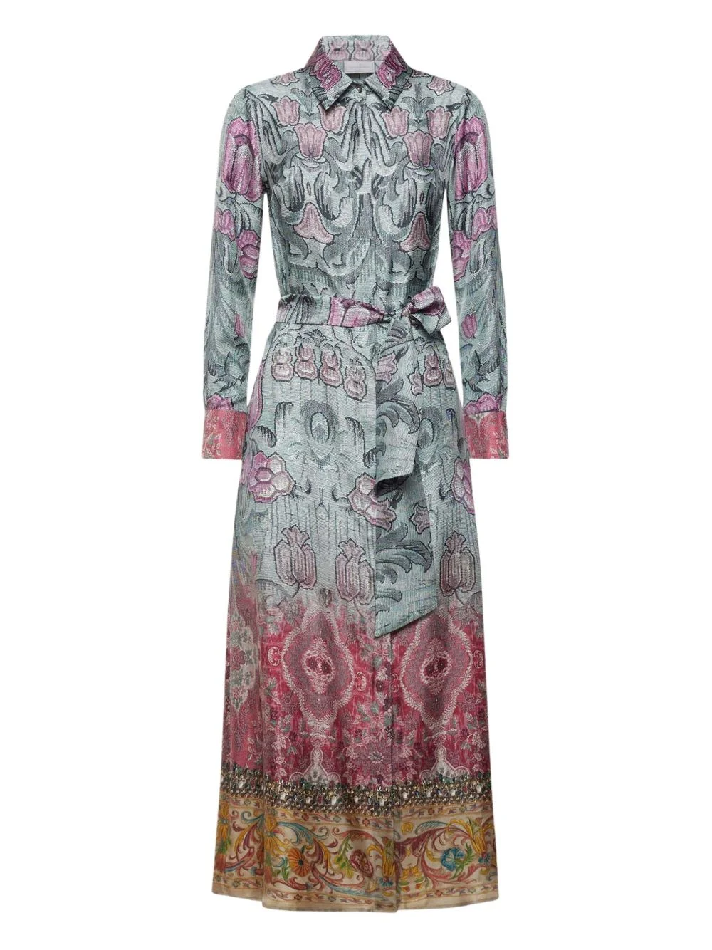 floral-print maxi dress Highlights - Blue - Floral print - Belted waist - Long sleeves - Polo collar - Button fastening Imported Composition Silk 100% Washing instructions Read Manufacturer Guidelines