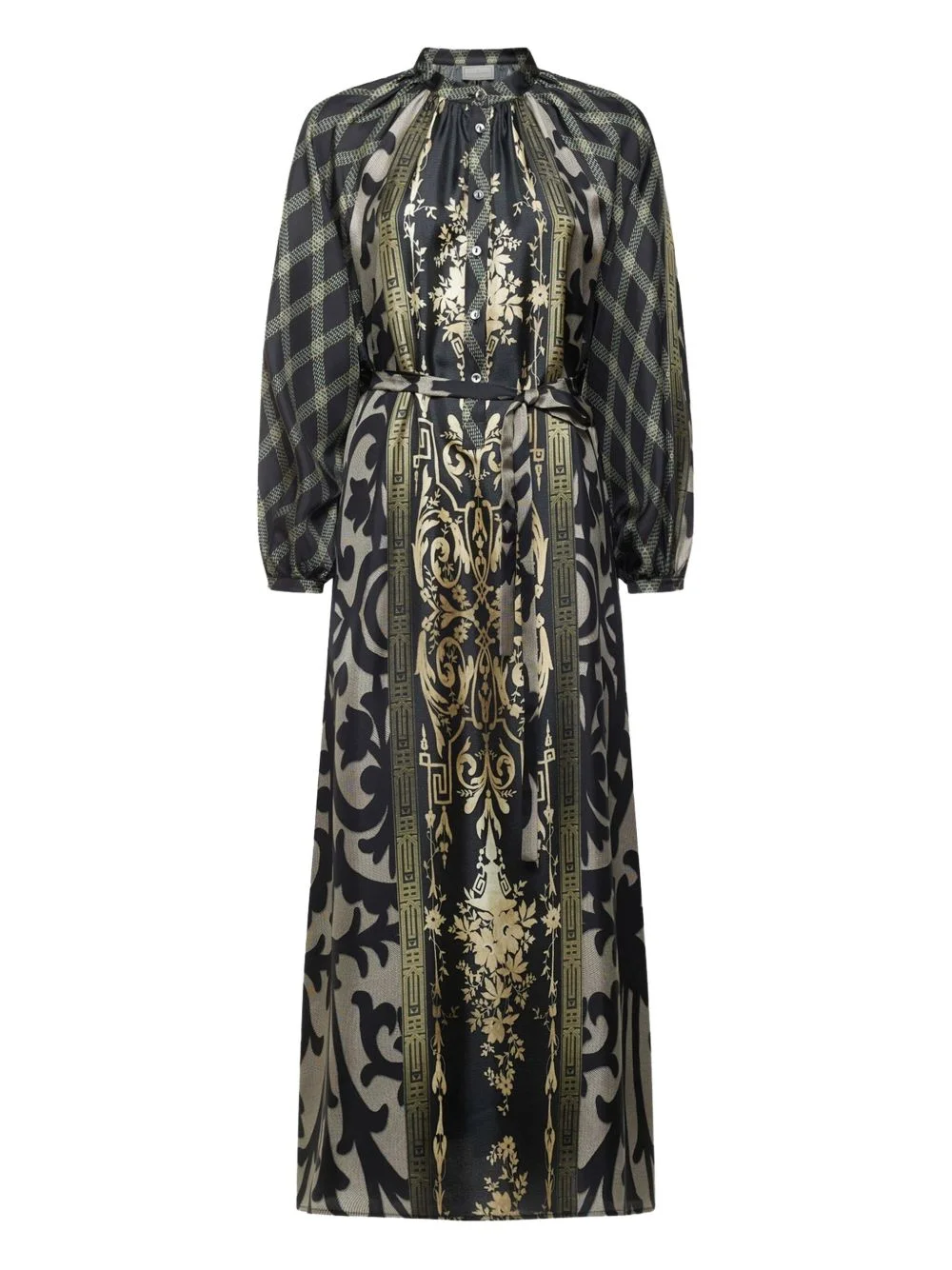 geometric-pattern maxi dress Highlights - Black - Crew neck - Geometric pattern - Long sleeves Imported Composition Silk 100% Washing instructions Read Manufacturer Guidelines