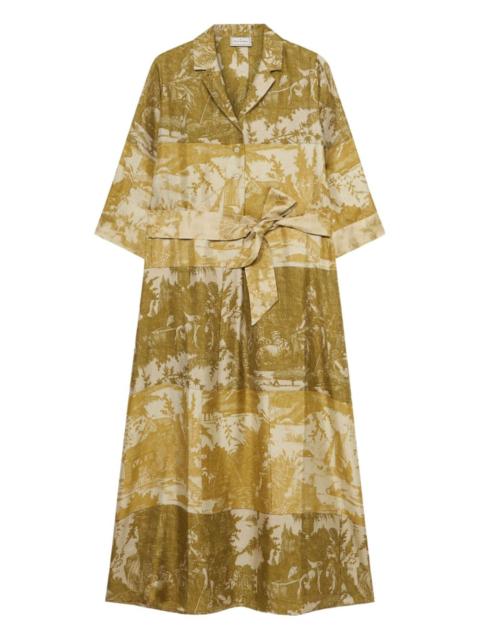 graphic-print midi dress Highlights - Multicoloured - Button closure - Three-quarter sleeves - Buttoned cuffs - Removable belt - Ikat pattern - Striped trim Made in Italy Composition Silk 100% Washing instructions Read Manufacturer Guidelines