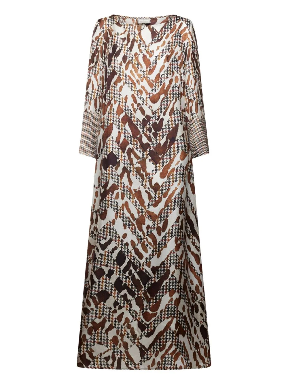 houndstooth-pattern animal-print maxi dress Highlights - Beige - Houndstooth pattern - Animal print - Long sleeves - Round neck Imported Composition Silk 100% Washing instructions Read Manufacturer Guidelines