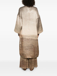 landscape-print coat Highlights - Gold-tone/brown - Open front - Long sleeves - Ombre effect - Straight hem Made in Italy Composition Wool 40%, Polyester 19%, Silk 16%, Polyamide 13%, Cotton 12% SIZE & FIT Model measurements Height 5 ft 10 in(1.79 m) Bust/Chest 31.88 in(81 cm) Hips 35.43 in(90 cm) Waist 23.62 in(60 cm) Washing instructions Dry Clean Only