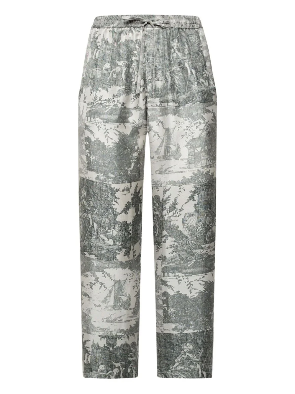 landscape-print drawstring trousers Highlights - Grey - Landscape print - Drawstring fastening - Straight leg Imported Composition Silk 100% Washing instructions Read Manufacturer Guidelines