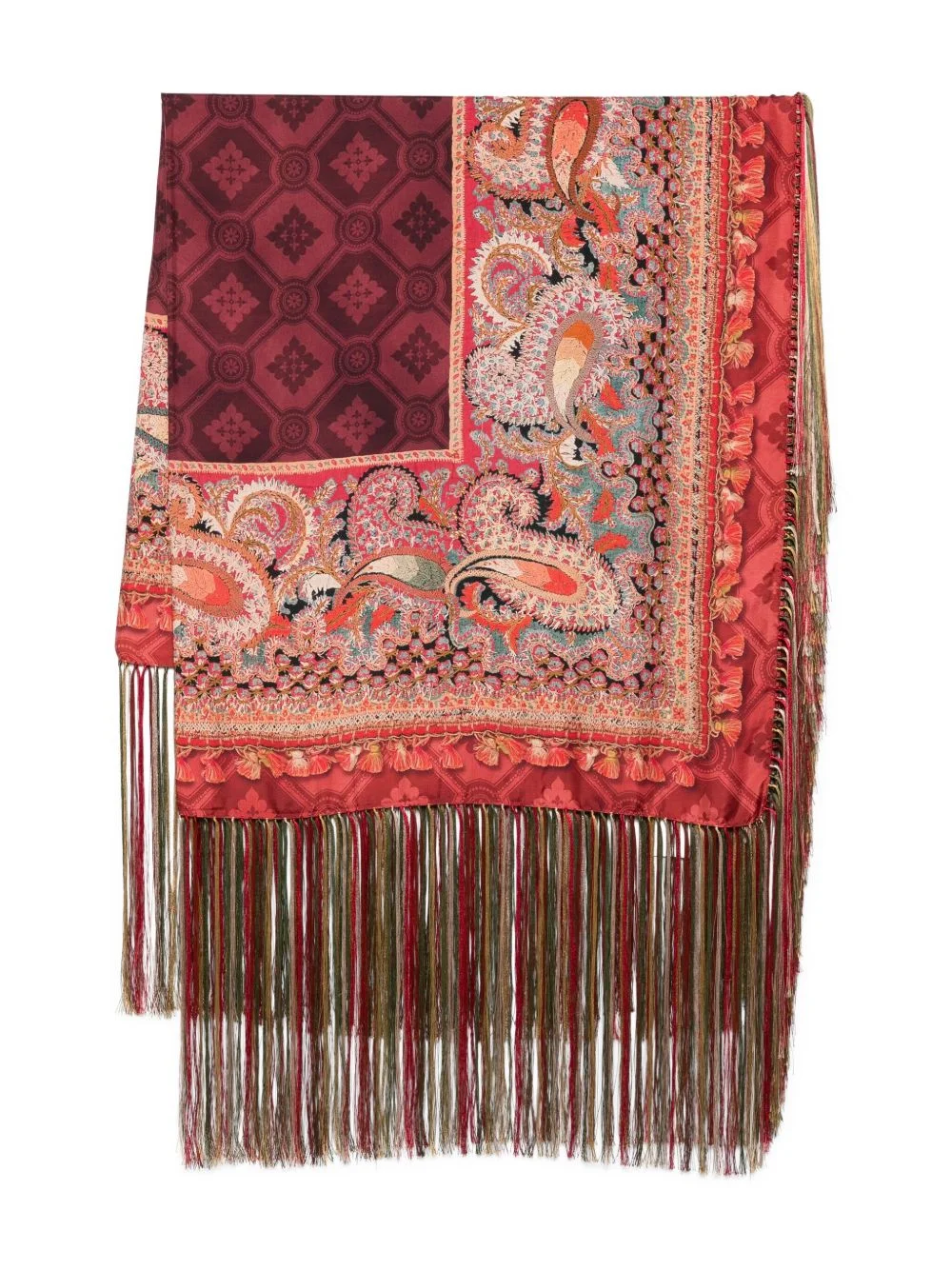 paisley-pattern fringed scarf Highlights - Red - Paisley pattern - Geometric pattern - Fringed edges - Silk material - Embroidered details Made in Italy Composition Silk 100% SIZE & FIT Measurement LENGTH 53.14 in(135 cm) WIDTH 53.14 in(135 cm) Washing instructions Dry Clean Only