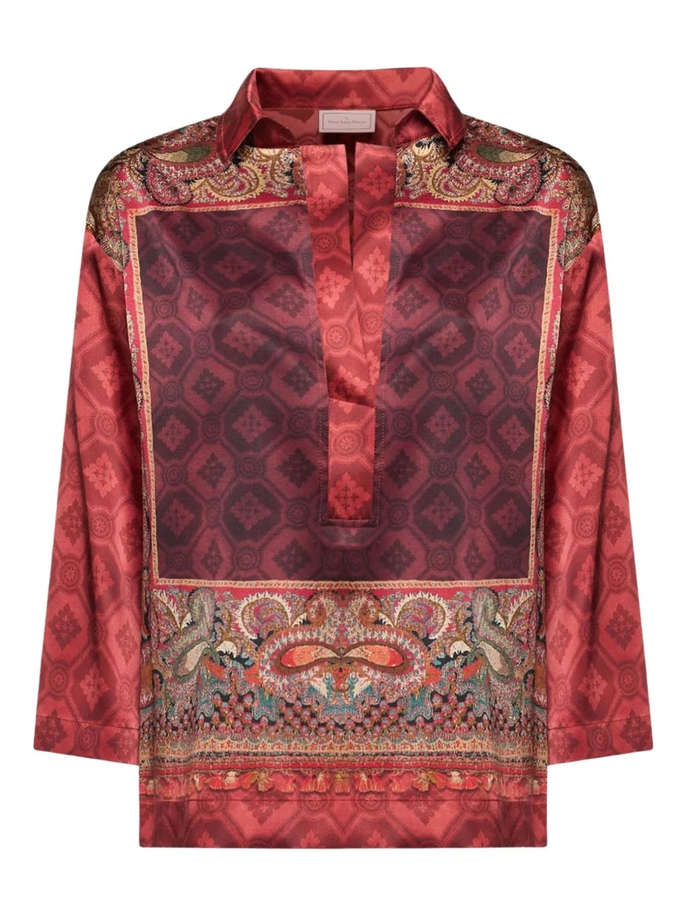 paisley-print blouse Highlights - Red - Paisley print - Three-quarter sleeves - Collared neckline Imported Composition Silk 93%, Spandex/Elastane 7% Washing instructions Read Manufacturer Guidelines