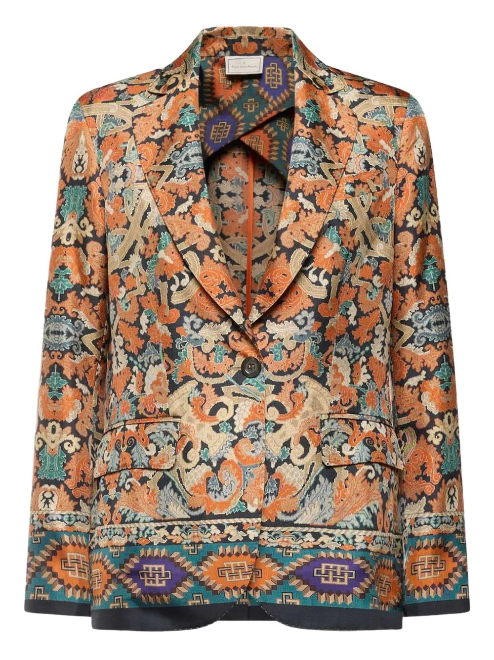 paisley-print single-breasted blazer Highlights - Dark orange - Paisley print - Single-breasted - Notched lapel - Button fastening - Patterned trim Imported Composition Silk 100% Washing instructions Read Manufacturer Guidelines
