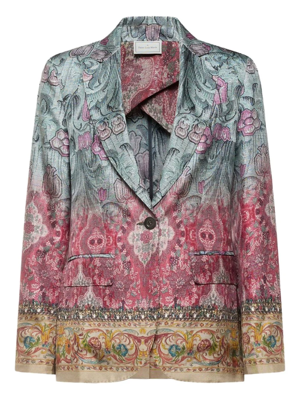 floral-print single-breasted blazer Highlights - Teal pink - Ombre effect - Floral print - Single-breasted - Tapestry weave - Decorative border Imported Composition Silk 100% Washing instructions Read Manufacturer Guidelines