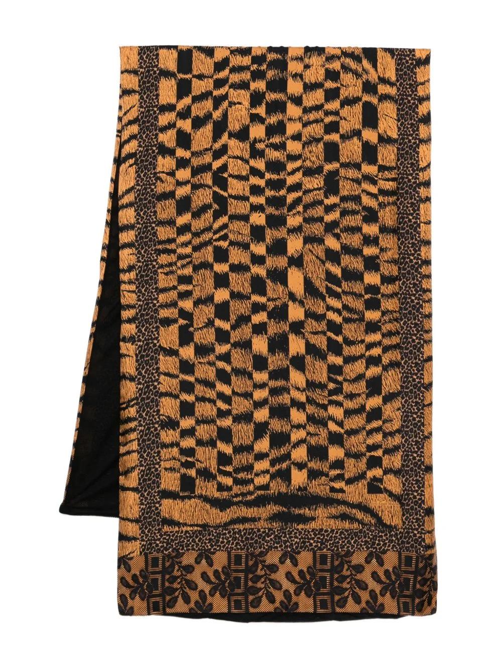 tiger-stripe lace-panelled scarf Highlights - Brown - Tiger-stripe pattern - Black lace trim - Rectangular shape Imported Composition Fabric 100% SIZE & FIT Measurement LENGTH 74.8 in(190 cm) WIDTH 25.59 in(65 cm) Washing instructions Read Manufacturer Guidelines