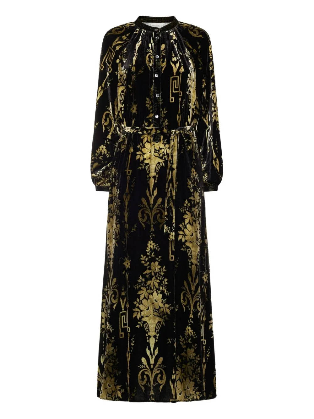 flower-pattern maxi dress Highlights - Black - Gold-tone print - Flower pattern - Long sleeves - Button fastening - Long sleeves Imported Composition Viscose 82%, Silk 18% Washing instructions Read Manufacturer Guidelines