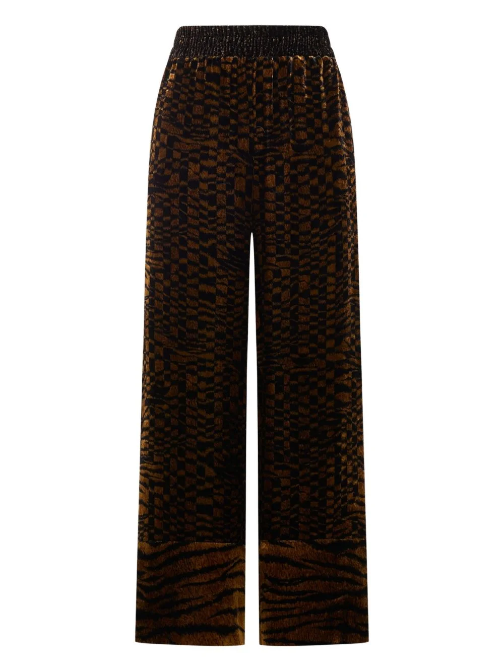 velvet geometric-pattern trousers Highlights - Dark brown - Velvet texture - Geometric pattern - Elasticated waistband Imported Composition Viscose 82%, Silk 18% Washing instructions Read Manufacturer Guidelines