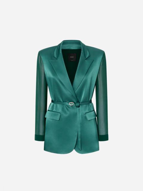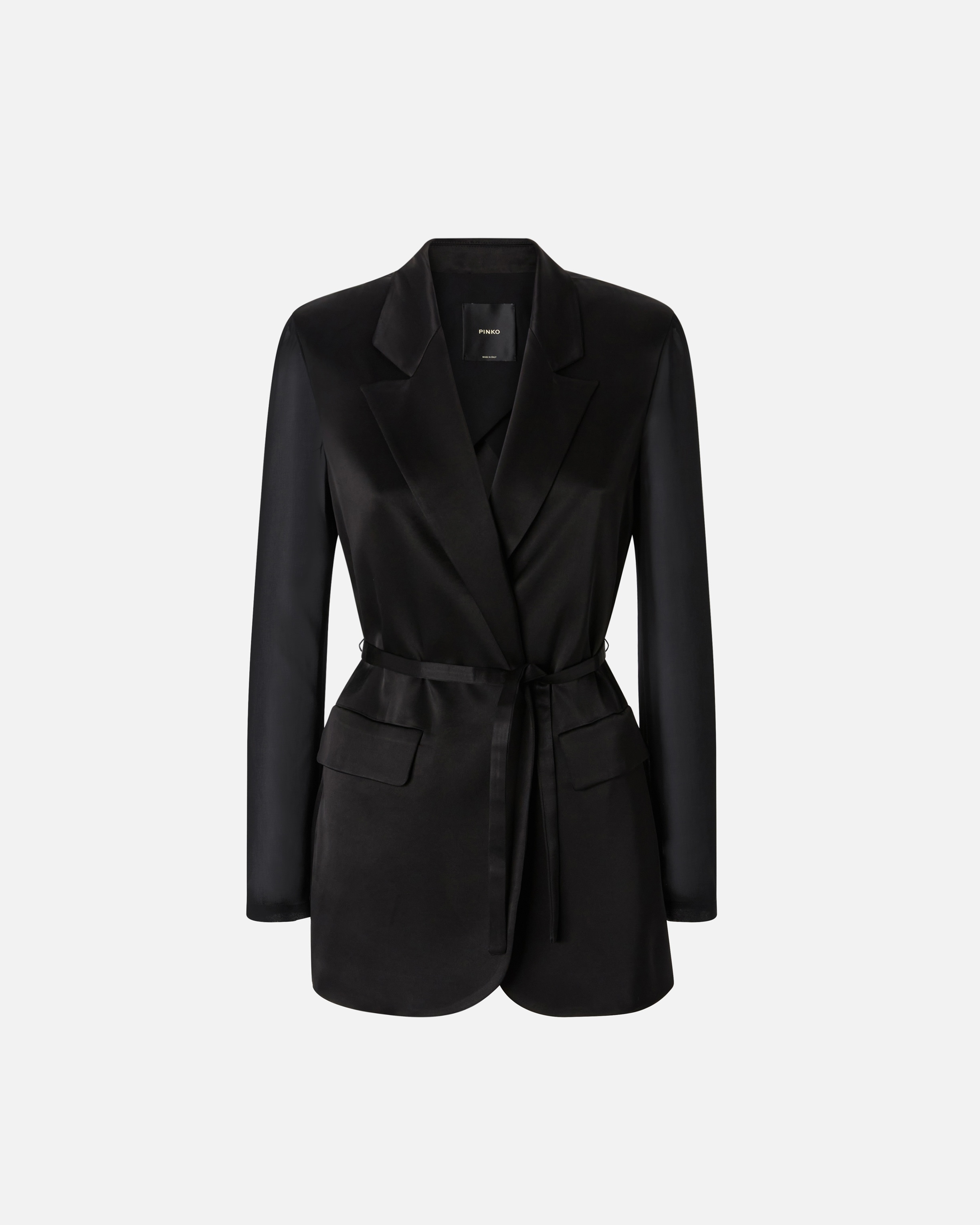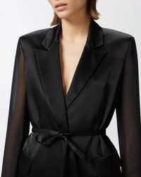 GAGNY JACKET − 104071A206Z99 Blazer in shiny satin fabric with long sleeves made from contrasting, semi-transparent georgette fabric. Lapel collar and flap-adorned side pockets. This jacket comes with a matching belt in the same fabric, which ties at the waist. COMPOSITION 1° Outside Fabric: ACETATE 91% POLYESTER 9% - 2° Outside Fabric: POLYESTER 100% - Lining: ACETATE 67% POLYESTER 33%
