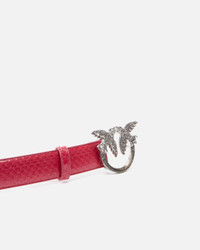 LOVE BERRY H3 BELT − 102671A28GN86O Women's 3-cm-wide belt crafted from fine ayers python skin with a special and refined glossy finish. The belt may display natural imperfections, which come from the leather itself and the hand-crafted application process: these characteristics are not to be considered a defect, but rather details that make every model distinctive and unique. The interior of the belt is crafted from smooth leather, while the fastening is embellished with a mini buckle with the metal Love Birds Diamond Cut logo, embellished with pave crystals, to add a sparkling accent to your evening looks. The accessory is part of the Limited Edition special capsule collection which comprises PINKO Galleria-exclusive limited-edition models. COMPOSITION Leather: SNAKESKIN LEATHER 100% SNAKESKIN 100% - Leather: COWHIDE 100% BOVINE SKIN 100% MEASUREMENTS - Width: 3 cm - Length: 101 cm