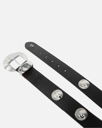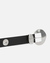 STUDS BELT − 105535A1ACZ99N 4-cm belt in soft leather with a shiny buckle with irregular, silver-plated metal design. The studs feature the same colour and shape of the buckle, giving the accessory a bold and unique touch. The design is completed by the silver-toned Love Birds logo on the tip. The interior is partly made from a material derived from regenerated leather fibres. Pair this versatile accessory with a pair of jeans for a casual outfit that leaves nothing to chance. COMPOSITION Leather: COWHIDE 100% BOVINE SKIN 100% - Body lining: NON LEATHER 52% POLYURETHANE 35% POLYESTER 10% VISCOSE 3% MEASUREMENTS - Height: 4 cm - Length: 84 cm