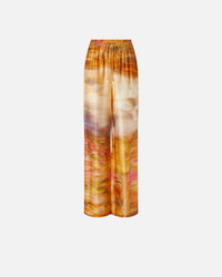 PURPLE RAIN TROUSERS − 104830A2G0CN4 Wide-leg long trousers in lightweight satin, customised with landscape print in which the image has been enlarged and blurred to create an almost abstract pattern. Complete with an elasticated drawstring waist, these wide-leg trousers are very comfortable. Providing a touch of originality, these landscape-print trousers are perfect for light, elegant summer looks. COMPOSITION Outside Fabric: VISCOSE 100% - Lining: VISCOSE 100%