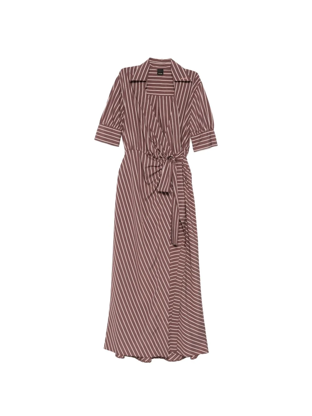 striped maxi shirt dress Highlights - Brown - Striped pattern - Tie detail - Turn-up cuffs - Open collar Imported Composition Viscose 87%, Nylon 13% Washing instructions Machine Wash