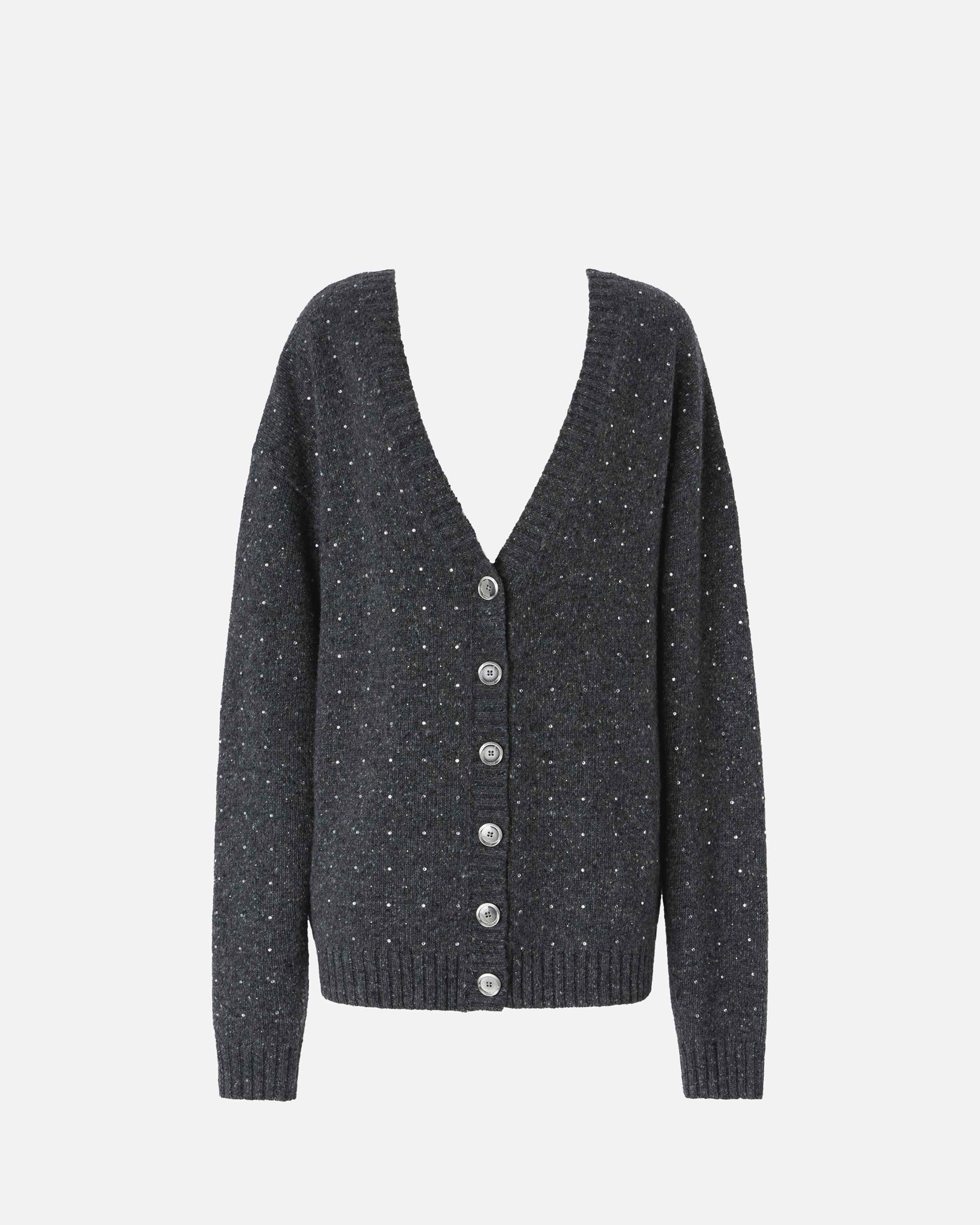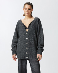 ARCHETTI CARDIGAN − 103966A232IZ9 Oversized cardigan with distinctive double-front design: the garment features a plunging V-neck and button fastening with ribbed edging at both the front and back. This cardigan is made from wool- and alpaca-blend knop yarn, whose striking three-dimensional texture is made even more special by the shiny rhinestones applied all over. COMPOSITION Outside Fabric: WOOL 63% ACRYLIC 31% ALPACA 6% - Accessory: Glass 100%